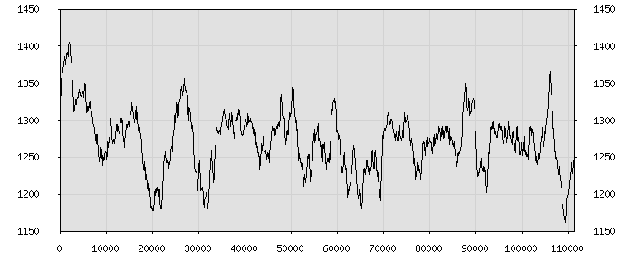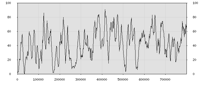 (по горизонтали: счётчик знаков; по вертикали: процент диалогов; размер скользящего окна: знаков, шаг: 1000 знаков) |