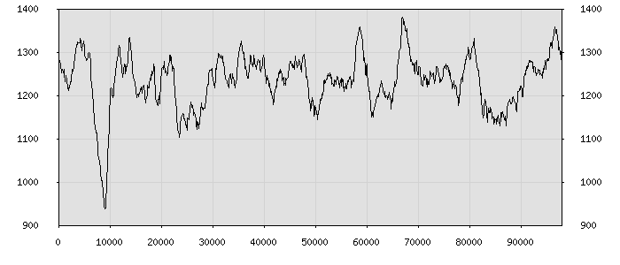 (по горизонтали: счётчик знаков; по вертикали: процент диалогов; размер скользящего окна: знаков, шаг: 1000 знаков) |