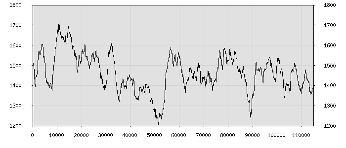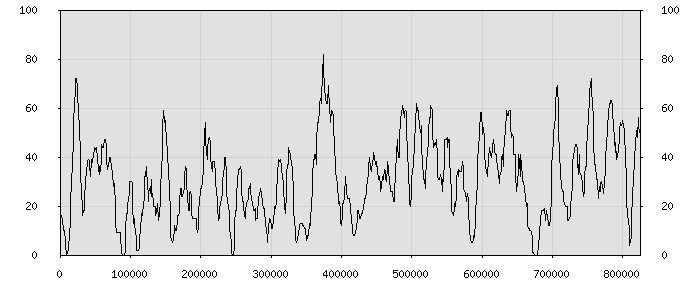(по горизонтали: счётчик знаков; по вертикали: процент диалогов; размер скользящего окна: знаков, шаг: 1000 знаков) |