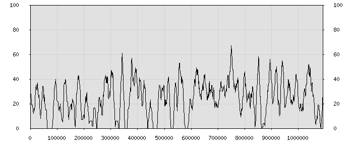 (по горизонтали: счётчик знаков; по вертикали: процент диалогов; размер скользящего окна: знаков, шаг: 1000 знаков) |