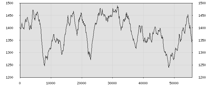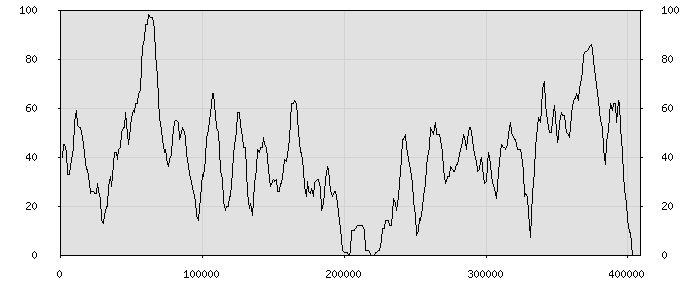 (по горизонтали: счётчик знаков; по вертикали: процент диалогов; размер скользящего окна: знаков, шаг: 1000 знаков) |