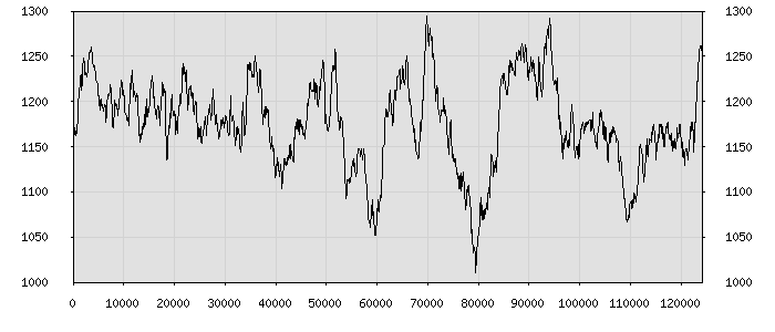 (по горизонтали: счётчик знаков; по вертикали: процент диалогов; размер скользящего окна: знаков, шаг: 1000 знаков) |