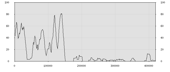 (по горизонтали: счётчик знаков; по вертикали: процент диалогов; размер скользящего окна: знаков, шаг: 1000 знаков) |