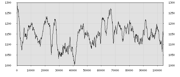 (по горизонтали: счётчик знаков; по вертикали: процент диалогов; размер скользящего окна: знаков, шаг: 1000 знаков) |
