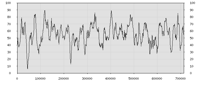 (по горизонтали: счётчик знаков; по вертикали: процент диалогов; размер скользящего окна: знаков, шаг: 1000 знаков) |
