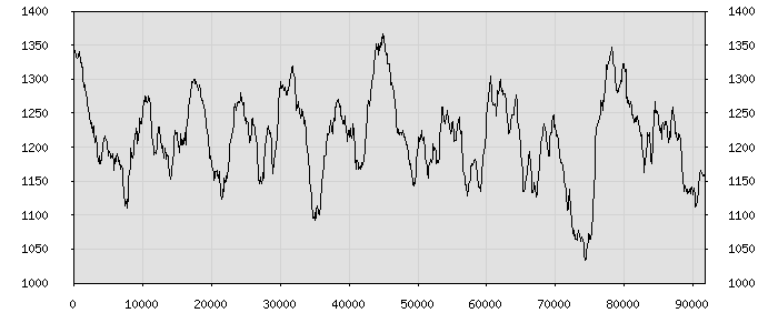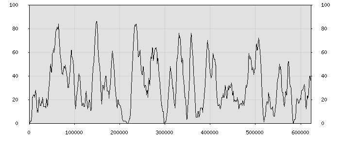 (по горизонтали: счётчик знаков; по вертикали: процент диалогов; размер скользящего окна: знаков, шаг: 1000 знаков) |
