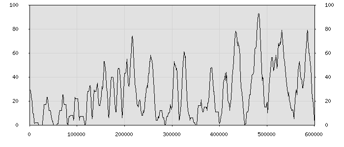 (по горизонтали: счётчик знаков; по вертикали: процент диалогов; размер скользящего окна: знаков, шаг: 1000 знаков) |