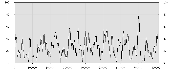 (по горизонтали: счётчик знаков; по вертикали: процент диалогов; размер скользящего окна: знаков, шаг: 1000 знаков) |
