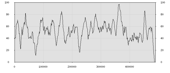(по горизонтали: счётчик знаков; по вертикали: процент диалогов; размер скользящего окна: знаков, шаг: 1000 знаков) |