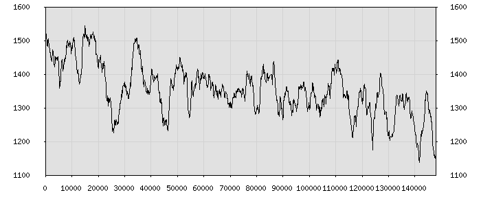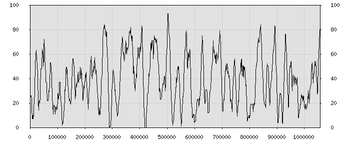 (по горизонтали: счётчик знаков; по вертикали: процент диалогов; размер скользящего окна: знаков, шаг: 1000 знаков) |
