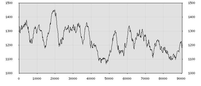 (по горизонтали: счётчик знаков; по вертикали: процент диалогов; размер скользящего окна: знаков, шаг: 1000 знаков) |