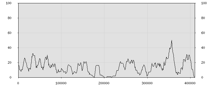 (по горизонтали: счётчик знаков; по вертикали: процент диалогов; размер скользящего окна: знаков, шаг: 1000 знаков) |