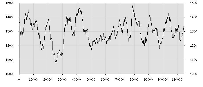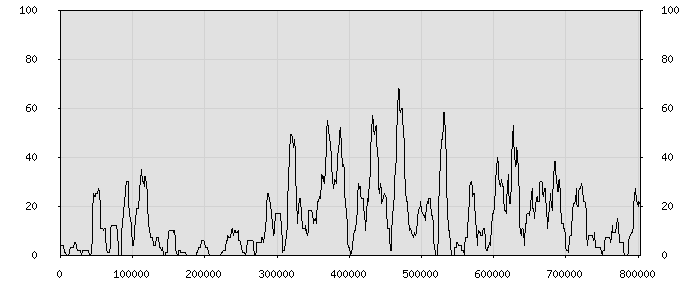 (по горизонтали: счётчик знаков; по вертикали: процент диалогов; размер скользящего окна: знаков, шаг: 1000 знаков) |