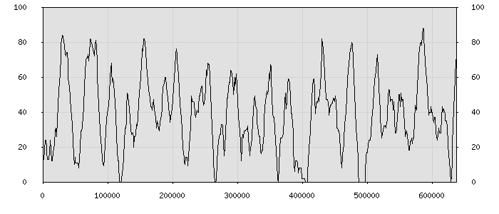 (по горизонтали: счётчик знаков; по вертикали: процент диалогов; размер скользящего окна: знаков, шаг: 1000 знаков) |