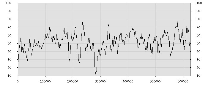 (по горизонтали: счётчик знаков; по вертикали: процент диалогов; размер скользящего окна: знаков, шаг: 1000 знаков) |