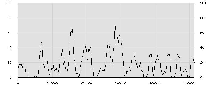(по горизонтали: счётчик знаков; по вертикали: процент диалогов; размер скользящего окна: знаков, шаг: 1000 знаков) |