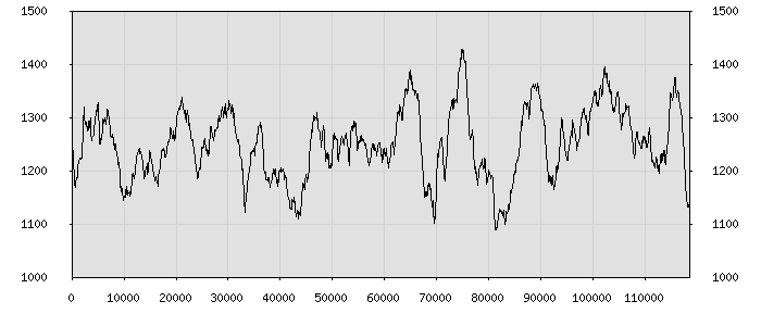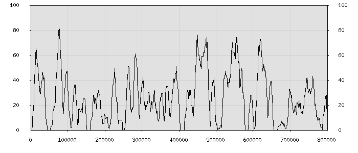 (по горизонтали: счётчик знаков; по вертикали: процент диалогов; размер скользящего окна: знаков, шаг: 1000 знаков) |