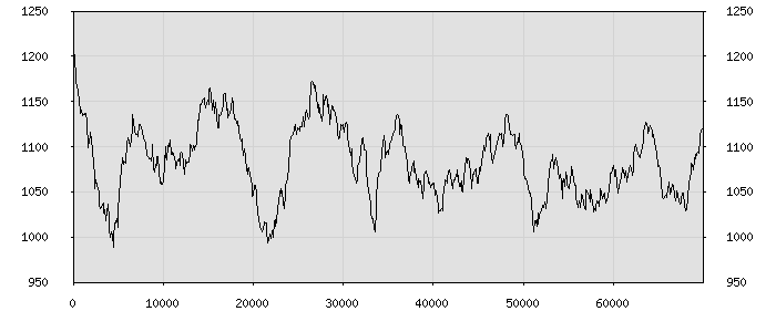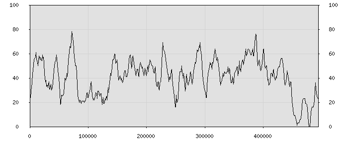 (по горизонтали: счётчик знаков; по вертикали: процент диалогов; размер скользящего окна: знаков, шаг: 1000 знаков) |