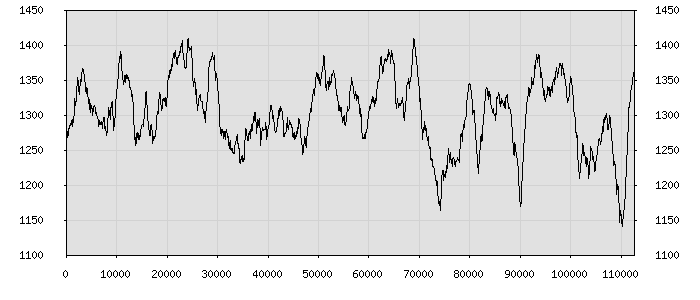 (по горизонтали: счётчик знаков; по вертикали: процент диалогов; размер скользящего окна: знаков, шаг: 1000 знаков) |