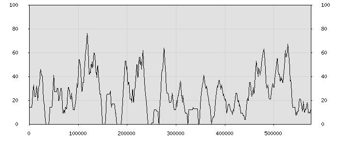 (по горизонтали: счётчик знаков; по вертикали: процент диалогов; размер скользящего окна: знаков, шаг: 1000 знаков) |