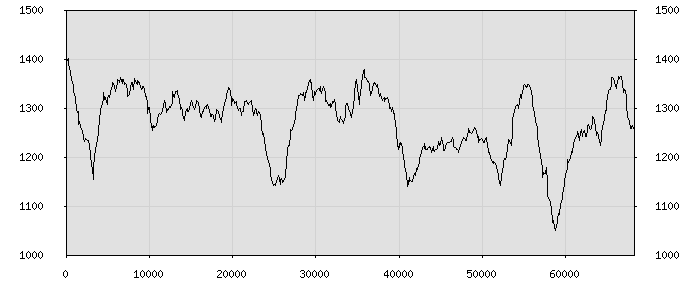 (по горизонтали: счётчик знаков; по вертикали: процент диалогов; размер скользящего окна: знаков, шаг: 1000 знаков) |