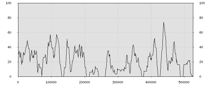 (по горизонтали: счётчик знаков; по вертикали: процент диалогов; размер скользящего окна: знаков, шаг: 1000 знаков) |