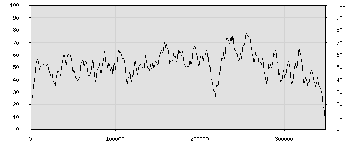 (по горизонтали: счётчик знаков; по вертикали: процент диалогов; размер скользящего окна: знаков, шаг: 1000 знаков) |