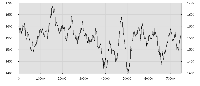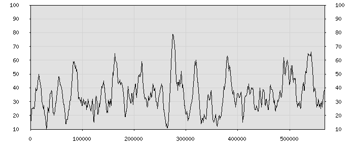 (по горизонтали: счётчик знаков; по вертикали: процент диалогов; размер скользящего окна: знаков, шаг: 1000 знаков) |