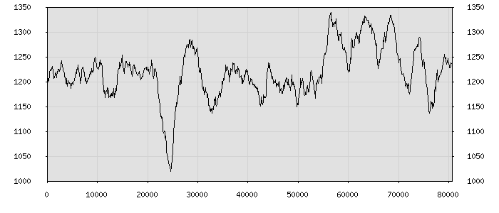 (по горизонтали: счётчик знаков; по вертикали: процент диалогов; размер скользящего окна: знаков, шаг: 1000 знаков) |