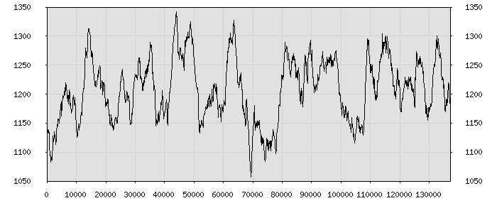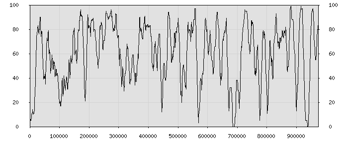 (по горизонтали: счётчик знаков; по вертикали: процент диалогов; размер скользящего окна: знаков, шаг: 1000 знаков) |