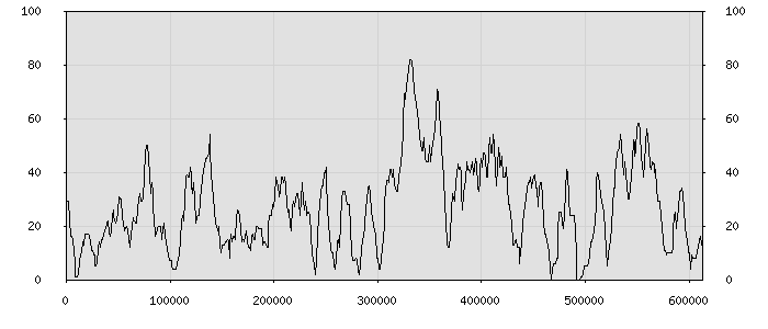 (по горизонтали: счётчик знаков; по вертикали: процент диалогов; размер скользящего окна: знаков, шаг: 1000 знаков) |