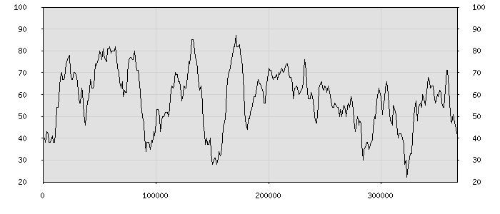 (по горизонтали: счётчик знаков; по вертикали: процент диалогов; размер скользящего окна: знаков, шаг: 1000 знаков) |