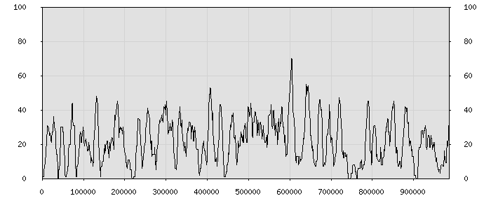 (по горизонтали: счётчик знаков; по вертикали: процент диалогов; размер скользящего окна: знаков, шаг: 1000 знаков) |
