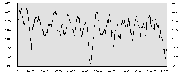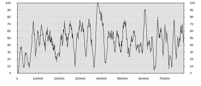 (по горизонтали: счётчик знаков; по вертикали: процент диалогов; размер скользящего окна: знаков, шаг: 1000 знаков) |