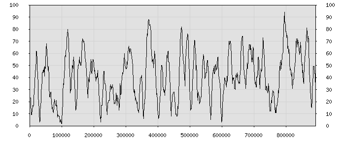 (по горизонтали: счётчик знаков; по вертикали: процент диалогов; размер скользящего окна: знаков, шаг: 1000 знаков) |