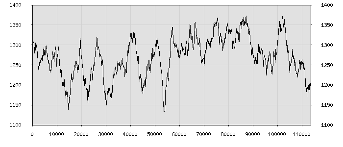 (по горизонтали: счётчик знаков; по вертикали: процент диалогов; размер скользящего окна: знаков, шаг: 1000 знаков) |