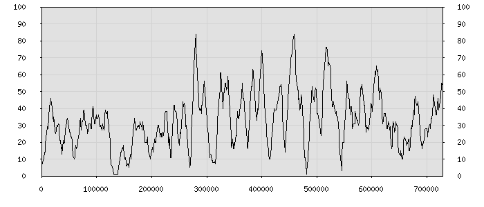 (по горизонтали: счётчик знаков; по вертикали: процент диалогов; размер скользящего окна: знаков, шаг: 1000 знаков) |