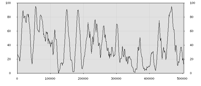(по горизонтали: счётчик знаков; по вертикали: процент диалогов; размер скользящего окна: знаков, шаг: 1000 знаков) |