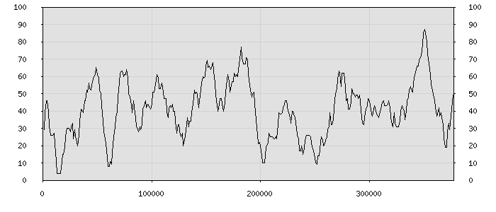 (по горизонтали: счётчик знаков; по вертикали: процент диалогов; размер скользящего окна: знаков, шаг: 1000 знаков) |