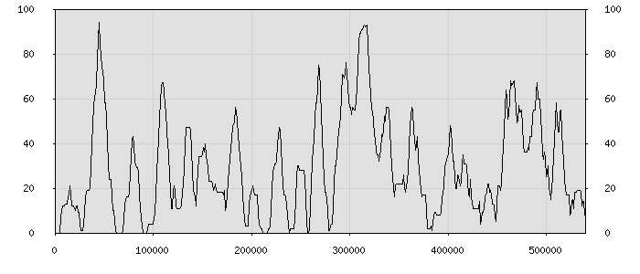 (по горизонтали: счётчик знаков; по вертикали: процент диалогов; размер скользящего окна: знаков, шаг: 1000 знаков) |