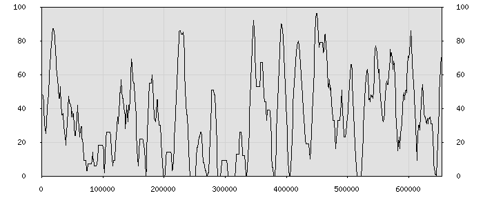 (по горизонтали: счётчик знаков; по вертикали: процент диалогов; размер скользящего окна: знаков, шаг: 1000 знаков) |