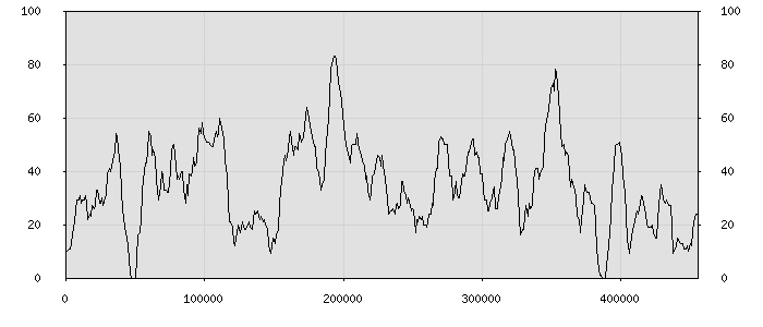 (по горизонтали: счётчик знаков; по вертикали: процент диалогов; размер скользящего окна: знаков, шаг: 1000 знаков) |