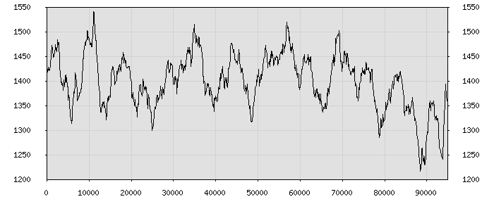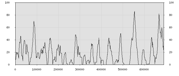(по горизонтали: счётчик знаков; по вертикали: процент диалогов; размер скользящего окна: знаков, шаг: 1000 знаков) |