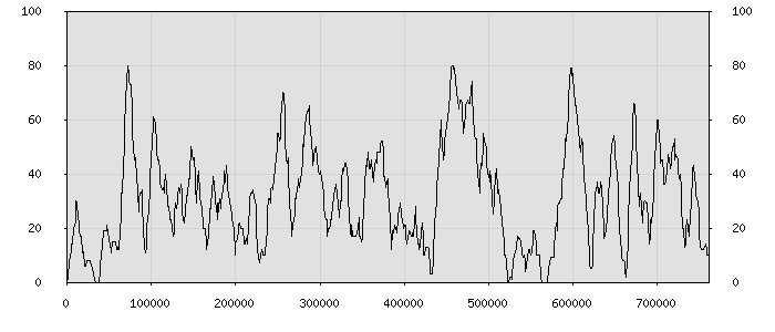 (по горизонтали: счётчик знаков; по вертикали: процент диалогов; размер скользящего окна: знаков, шаг: 1000 знаков) |