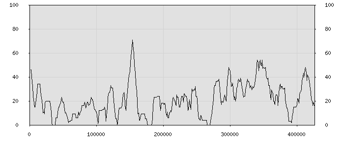 (по горизонтали: счётчик знаков; по вертикали: процент диалогов; размер скользящего окна: знаков, шаг: 1000 знаков) |