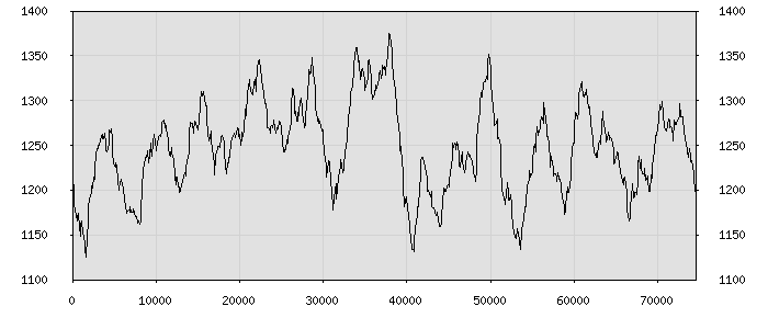 (по горизонтали: счётчик знаков; по вертикали: процент диалогов; размер скользящего окна: знаков, шаг: 1000 знаков) |