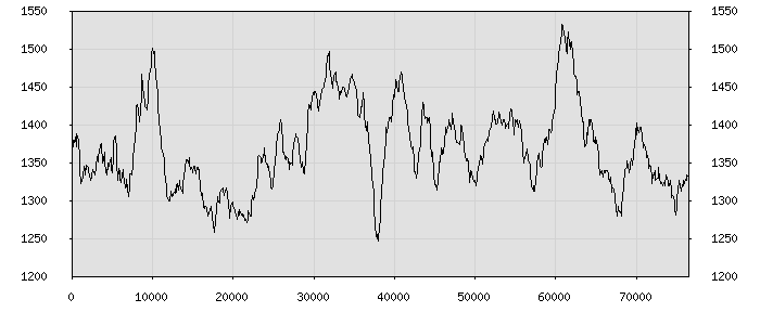 (по горизонтали: счётчик знаков; по вертикали: процент диалогов; размер скользящего окна: знаков, шаг: 1000 знаков) |