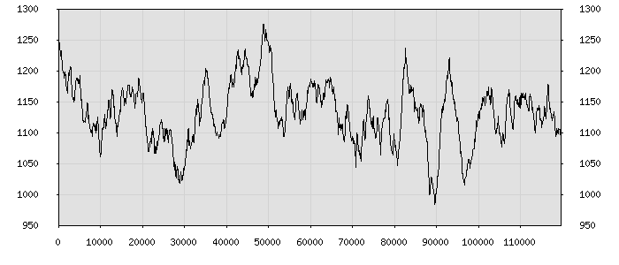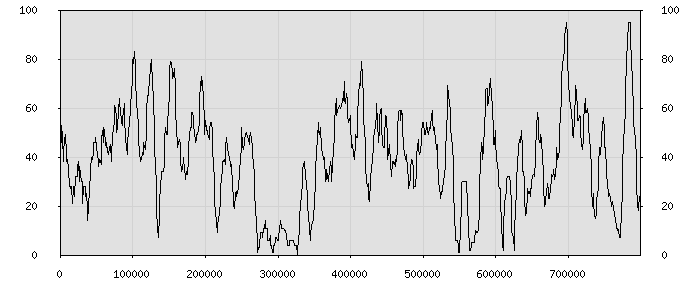 (по горизонтали: счётчик знаков; по вертикали: процент диалогов; размер скользящего окна: знаков, шаг: 1000 знаков) |