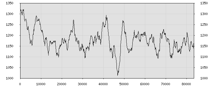 (по горизонтали: счётчик знаков; по вертикали: процент диалогов; размер скользящего окна: знаков, шаг: 1000 знаков) |