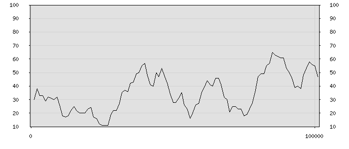(по горизонтали: счётчик знаков; по вертикали: процент диалогов; размер скользящего окна: знаков, шаг: 1000 знаков) |